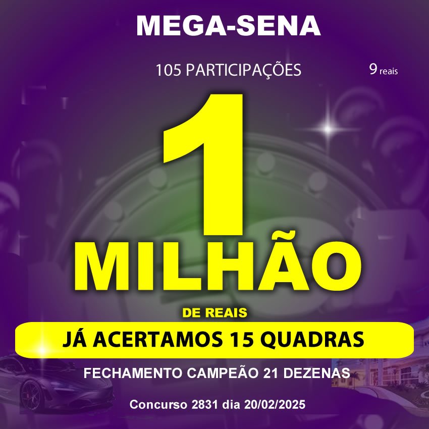 Bolão Mega-Sena 2831 FECHAMENTO COM 21 DEZENAS