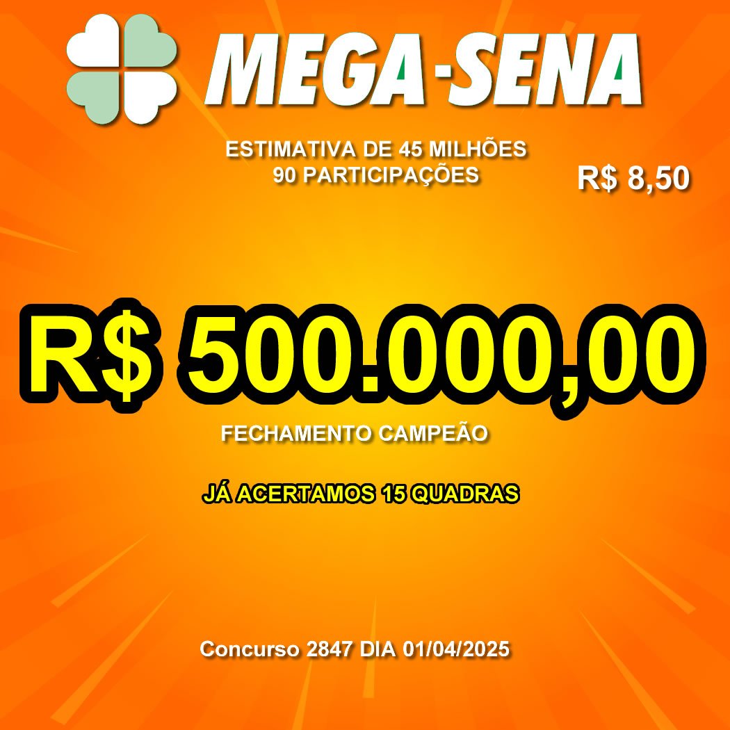 Bolão Mega-Sena 2847 FECHAMENTO COM 21 DEZENAS