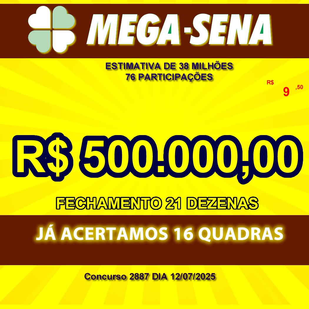 Bolão Mega-Sena 2887 FECHAMENTO COM 21 DEZENAS