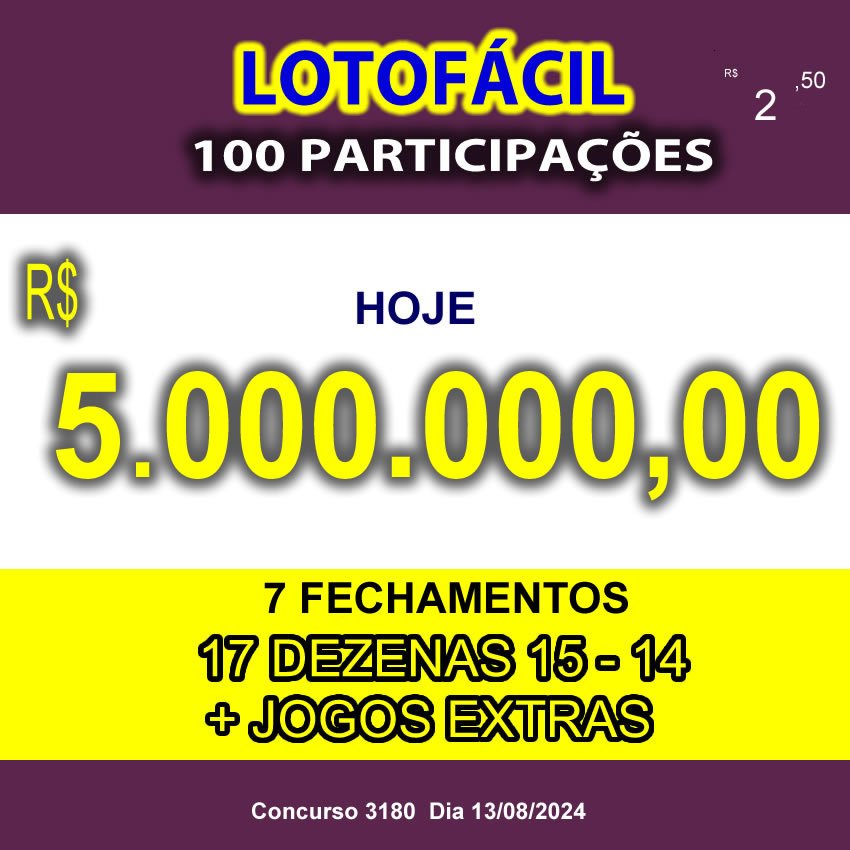 / LOTOFÁCIL CONCURSO 3180 Especial Final Zero
