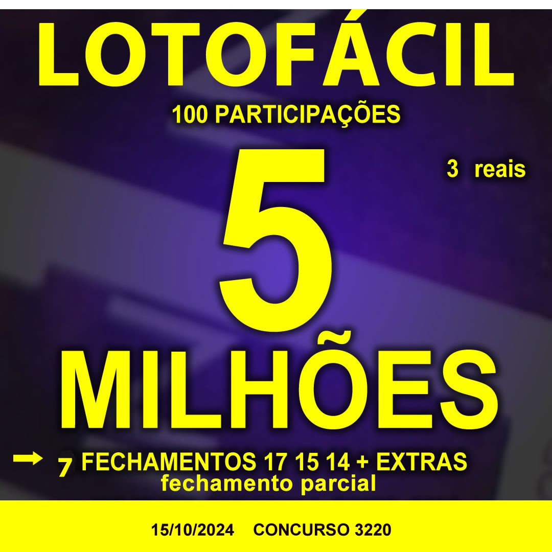 Bolão com 7 fechamentos 17-15-14 (fechamento parcial 14 pontos não é 100% garantido).