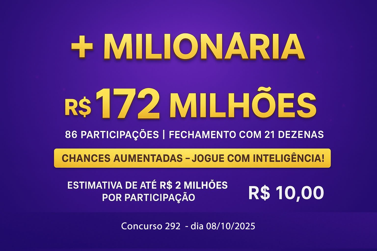 + MILIONÁRIA 172 MILHÕES