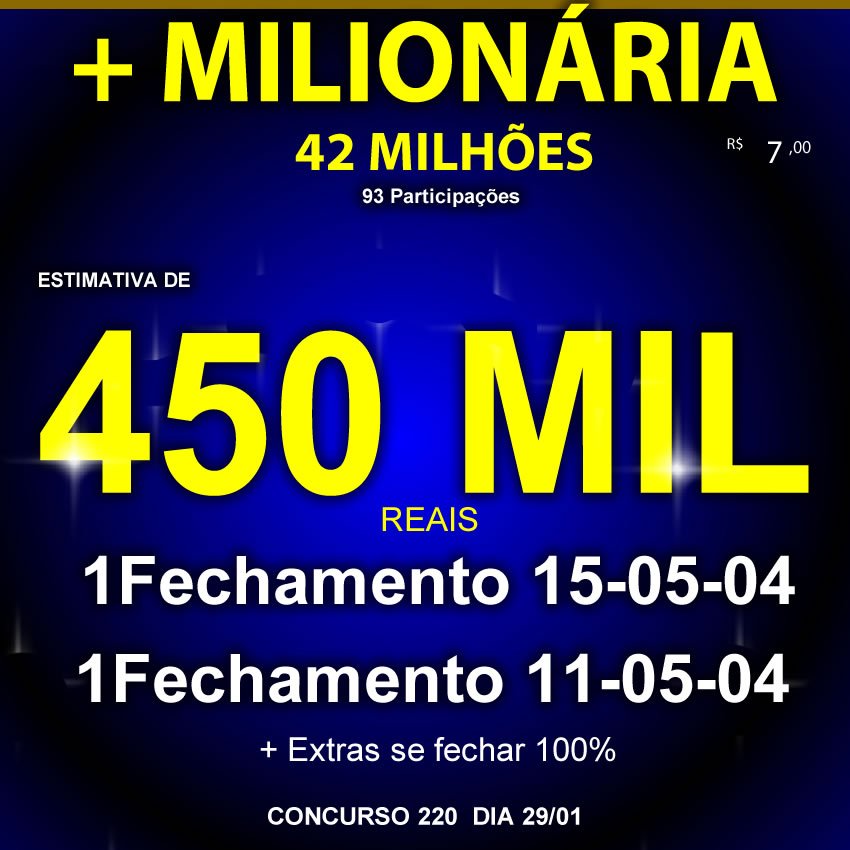 + Jogos extras se fechar 100% das participações.